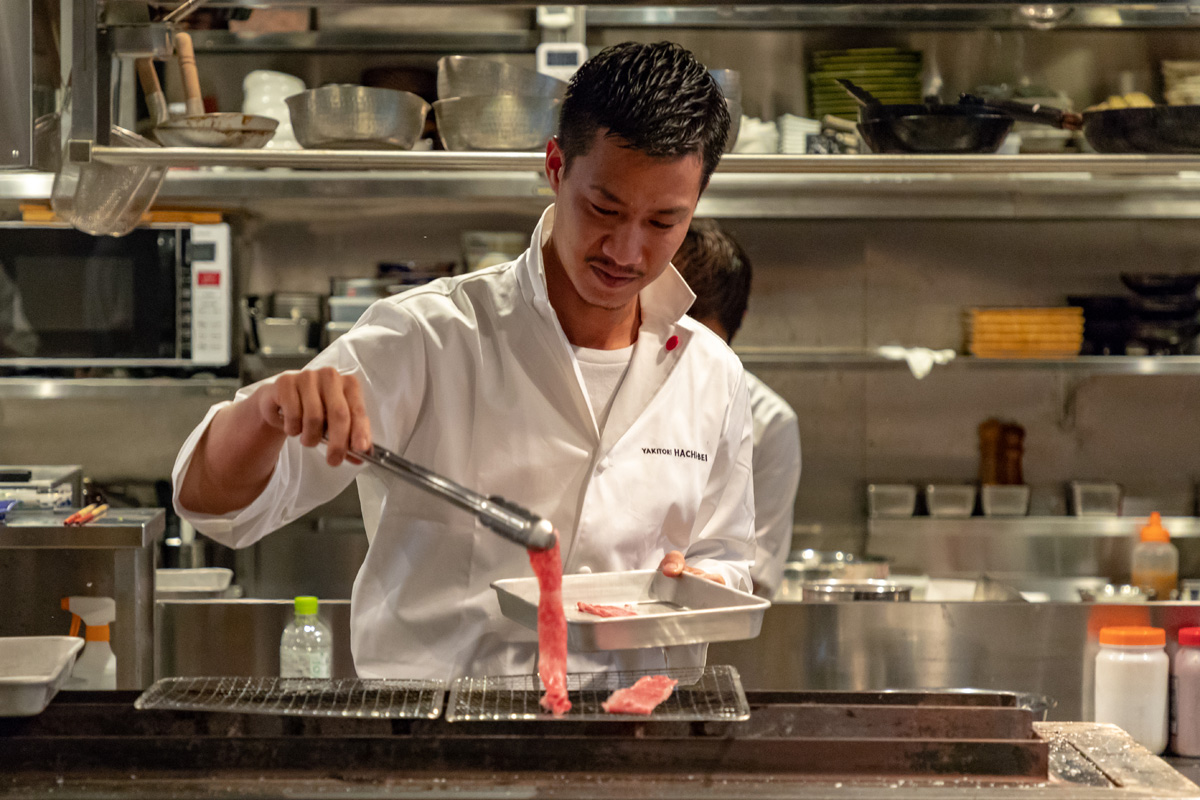 ホールスタッフが肉をお客様のテーブル上でかけてもいいし、お客様自身で鉄板の上で焼いてもらっても大丈夫です。
