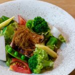 自然豊かに育った糸島野菜と八兵衛の炭火で焼き上げた鳥もも肉のバンバンジー。