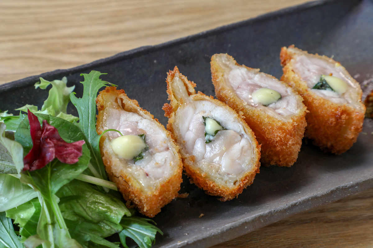 糸島どりを使い、チーズ、大葉を入れる事によってコクがでます。骨なし手羽の特徴でもあるジューシーさもありつつ、揚げる事によって旨みが凝縮されてめちゃめちゃ美味しいです!サイズも食べやすくカツなのでお客様も頼みやすいと思います。
