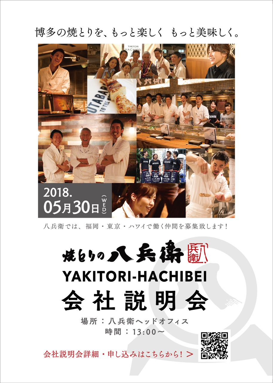 2019年度卒業予定、および第二新卒(既卒2年以内)の方を対象に焼とりの八兵衛会社説明会を開催いたします。