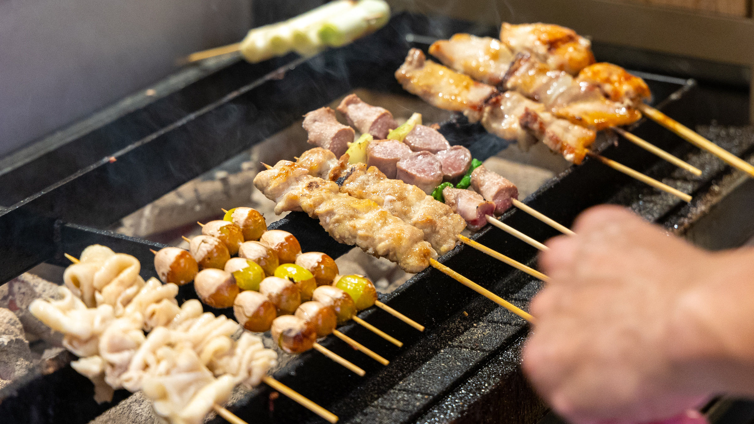 六本松はいつでも八兵衛日和 昼12時から通し営業、炭火焼とりと名物串 シャンパンやワイン、日本酒や本格焼酎も勢揃い。